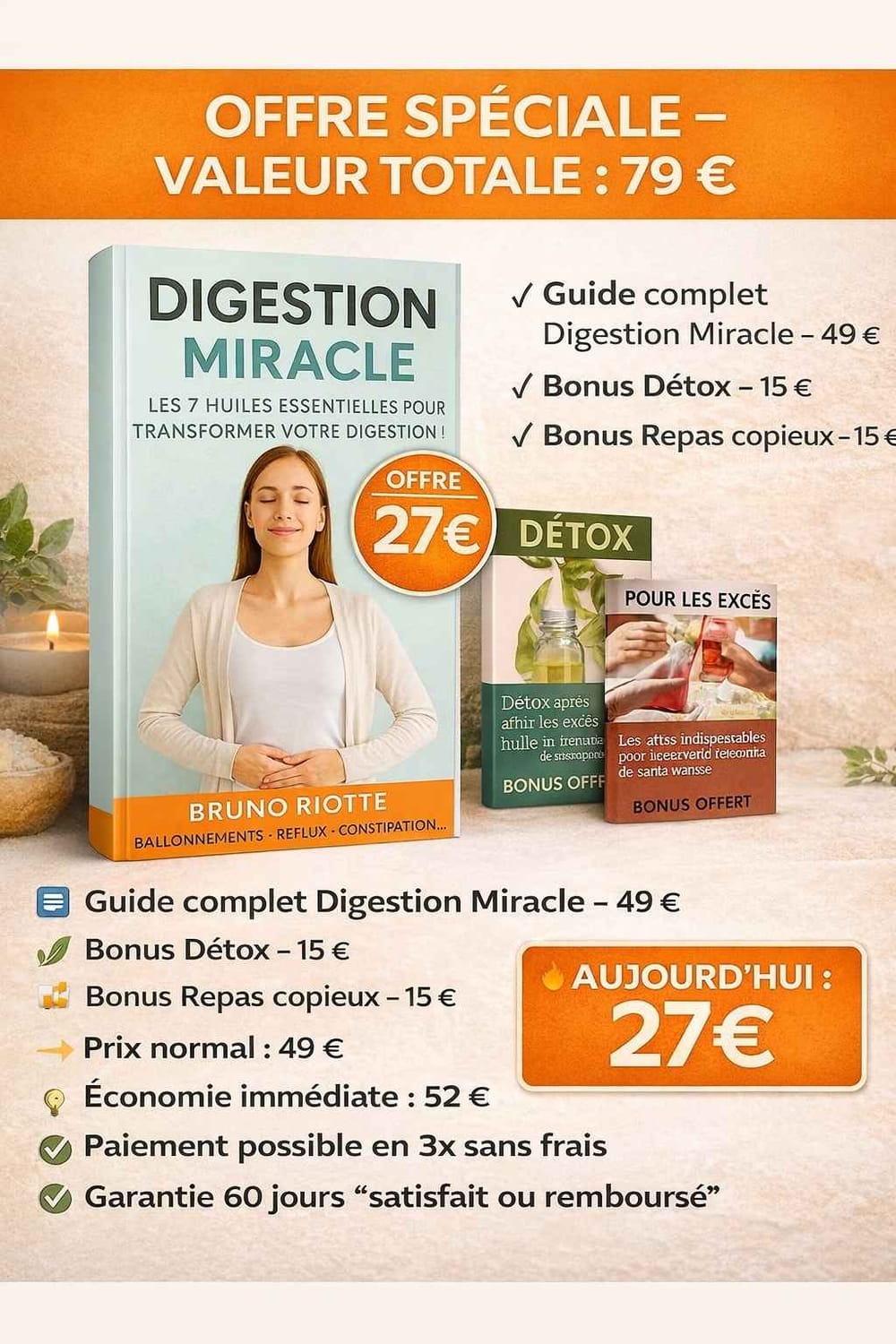 ✨ Vous recevez l’ensemble (guide + 2 bonus exclusifs) pour une valeur réelle de 79 €…